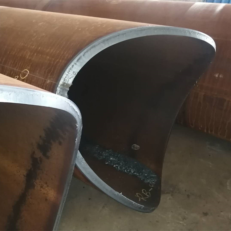 其次,大管徑相貫線切割機(jī)的切割臂采用扇形頭設(shè)計(jì),而普通的相貫線切割機(jī)采用的四連桿式設(shè)計(jì)。扇形頭設(shè)計(jì)的優(yōu)勢(shì)在于針對(duì)大型管材壁厚較厚時(shí)使用火焰切割,可以再加一把火焰預(yù)熱跟隨割炬,一邊預(yù)熱切割隨后切割,不僅可以提高切割效率,而且使得切割面沒有斷層,避免了鋸齒狀管件斷面的產(chǎn)生,提高了切割質(zhì)量。且坡口角度可以做到55度大角度坡口的切割。